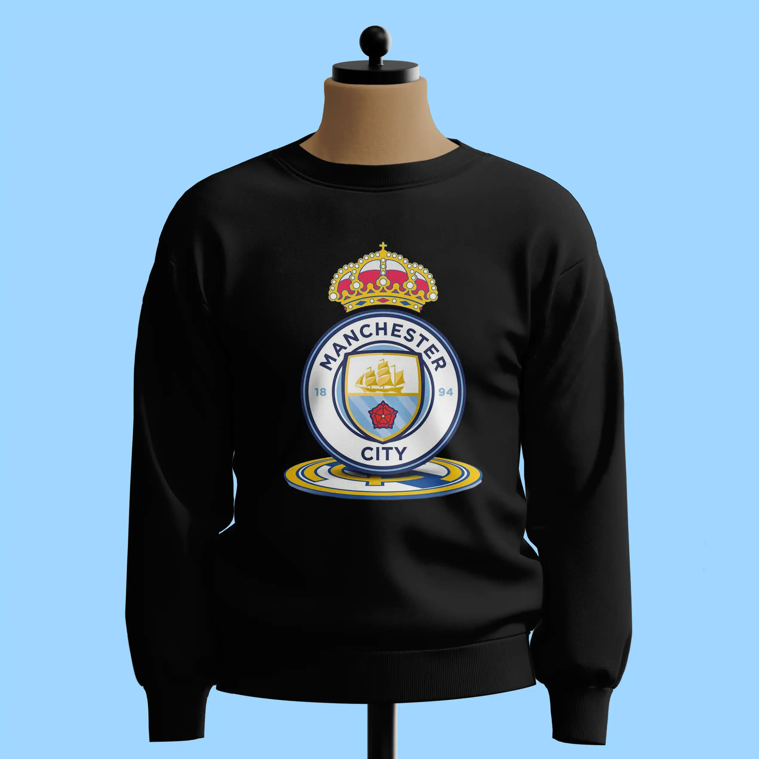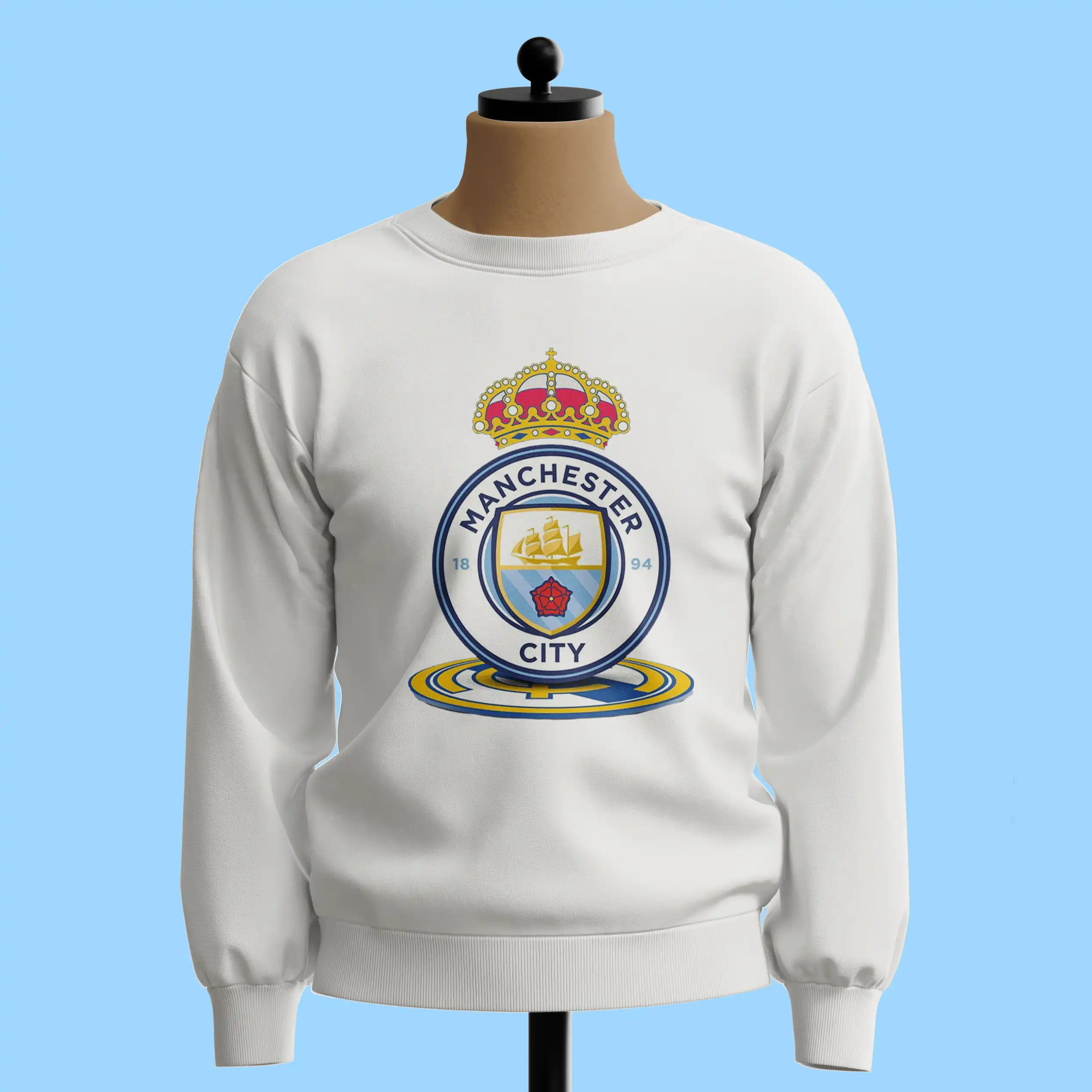 لباس طرح ترکیبی لوگوی منچسترسیتی و تاج رئال مادرید